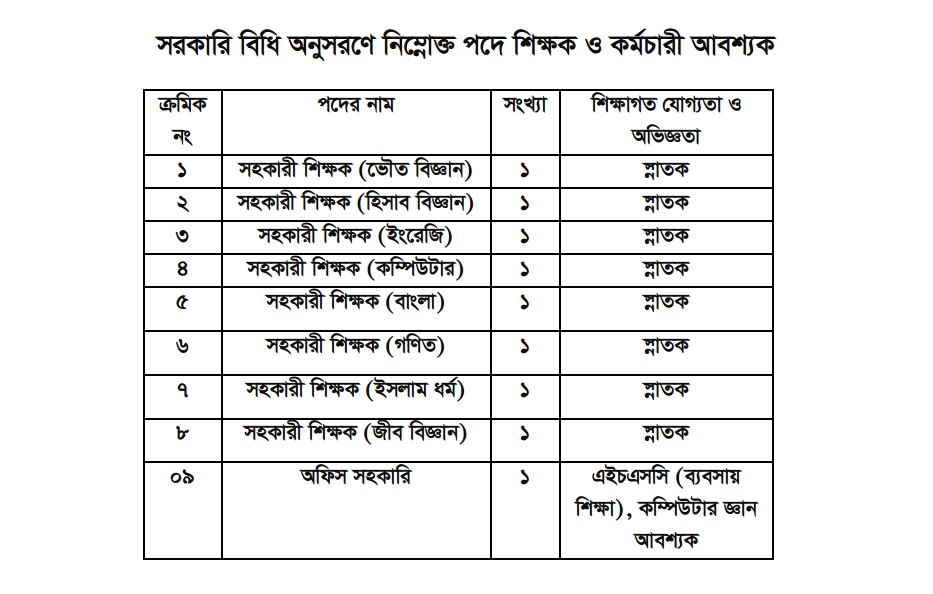 আগ্রহী প্রার্থীদের প্রয়োজনীয় কাগজপত্রের সত্যায়িত কপি, ২কপি ছবি সহ আগামী ৩১/০৮/২০২২ খ্রিঃ তারিখের মধ্যে সভাপতি বরাবর আবেদনের অনুরোধ করা গেল।