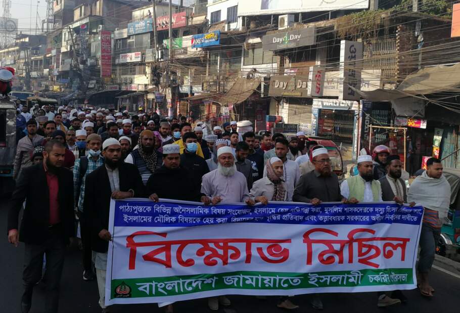 বাংলাদেশ জামায়াতে ইসলামি চকরিয়া পৌরসভার উদ্যোগে তত্ত্বাবধায়ক সরকারের মাধ্যমে নির্বাচন,গ্যাস ও বিদ্যুতের মূল্য বৃদ্ধির প্রতিবাদ, পাঠ্যপুস্তক থেকে অনৈসলামিক বিষয় বাতিলের দাবিতে বিক্ষোভ মিছিল অনুষ্ঠিত হয়েছে, ১১ফেব্রুয়ারী সকালে চকরিয়া পৌরশহরের চট্টগ্রাম-কক্সবাজার মহাসড়কের গুরুত্বপূর্ণ এলাকা প্রদক্ষিন করে পুরাতন বাস স্টেশনে গিয়ে সমাবেশে মিলিত হয়, এতে প্রধান অতিথি হিসেবে উপস্থিত ছিলেন, কক্সবাজার জেলা জামায়াতের কর্মপরিষদ সদস্য মাওলানা হেদায়েত উল্লাহ,আরো উপস্থিত ছিলেন চকরিয়া উপজেলা আমীর মাওলানা আবুল বশর, চকরিয়া পৌরসভার আমীর আরিফুল কবির, চকরিয়া উপজেলা সেক্রেটারি মাওলানা ছৈয়দ করিমসহ বিভিন্ন স্তরের নেতা-কর্মীরা উপস্থিত ছিলেন, সমাবেশে বক্তারা বলেন, অবিলম্বে তত্ত্বাবধায়ক সরকারের মাধ্যমে নির্বাচনের ব্যবস্থা করতে হবে, পাঠ্যপুস্তক থেকে বিকৃত ইতিহাস ও ইসলাম বিদ্বেষী বিষয় বাতিল করতে হবে, গ্যাস ও বিদ্যুতের মূল্য কমিয়ে জনগণের কষ্ট লাঘব করতে হবে,অন্যতায় সরকার পতন আন্দোলন জোরদার করে জালিম শাহীকে বিদায় করা হবে।
