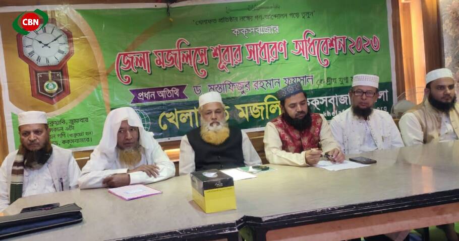 খেলাফত মজলিস ককসবাজার জেলা শাখার ২০২৩ – ২০২৪ ইং সেশনের জন্য ২৩ সদস্য বিশিষ্ট কমিটি পূনর্গঠন সম্পন্ন হয়েছে.. কক্সবাজার জেলা সভাপতি আলহাজ্ব মাওলানা মুফতি আবু মুসার সভাপতিত্বে ও বিদায়ী সাধারণ সম্পাদক হাফেজ মাওলানা নুরুল্লাহ জিহাদীর পরিচালনায় জেলা শাখা পূনর্গঠন উপলক্ষে মজলিশে শূরার সাধারণ অধিবেশন অনুষ্ঠিত হয়ছে। উক্ত অধিবেশনে প্রধান অতিথি হিসেবে উপস্থিত ছিলেন কেন্দ্রীয় যুগ্ম মহাসচিব ড. মুস্তাফিজুর রহমান ফয়সাল। বিশেষ অতিথি হিসেবে উপস্থিত ছিলেন কেন্দ্রীয় সাংগঠনিক সম্পাদক ও চট্টগ্রাম জোন পরিচালক অধ্যাপক খুরশিদ আলম।
