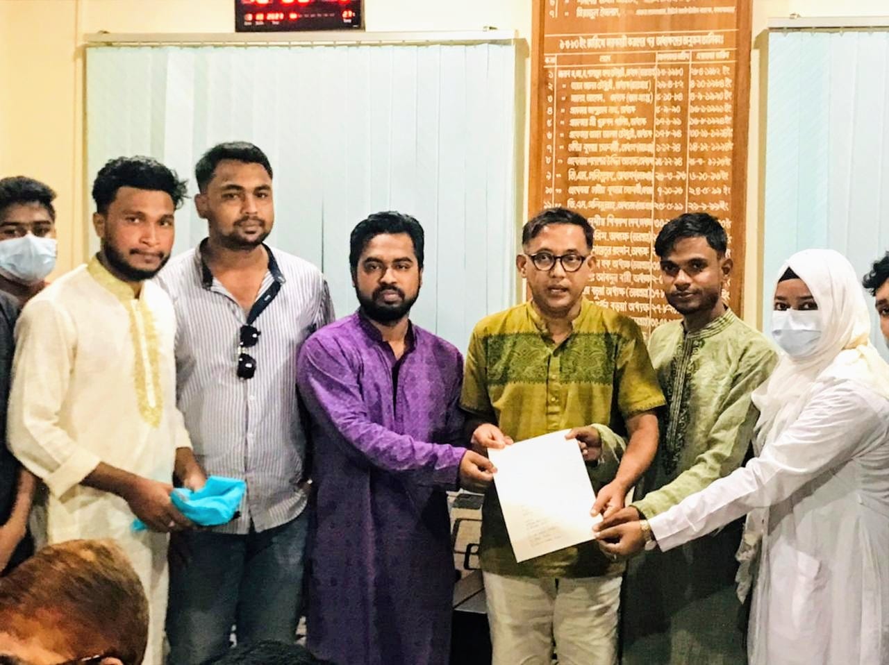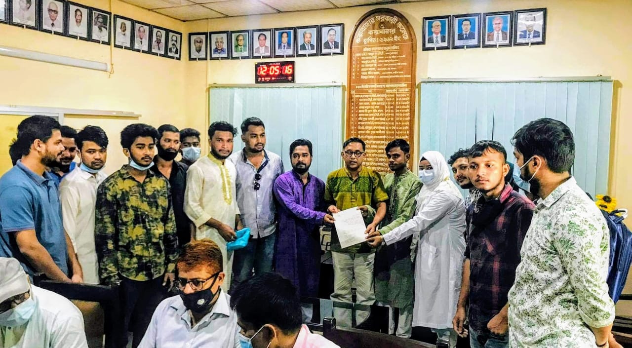কক্সবাজার সরকারি কলেজ ক্যাম্পাসে মুজিব কর্ণার স্থাপনের জন্য অধ্যক্ষকের কাছে স্মারক কলেজ ছাত্রলীগ।