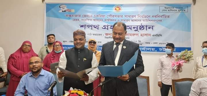 মঙ্গলবার (৫ অক্টোবর) বেলা ১২টার দিকে চট্টগ্রাম সার্কিট হাউস মিলনায়তনে মেয়র ও কাউন্সিলরদের শপথ গ্রহণ অনুষ্ঠিত হয়। চকরিয়া পৌরসভার নবনির্বাচিত মেয়র ও কাউন্সিলরদের শপথ বাক্য পাঠ করান চট্টগ্রাম বিভাগীয় কমিশনার কামরুল হাসান এনডিসি।