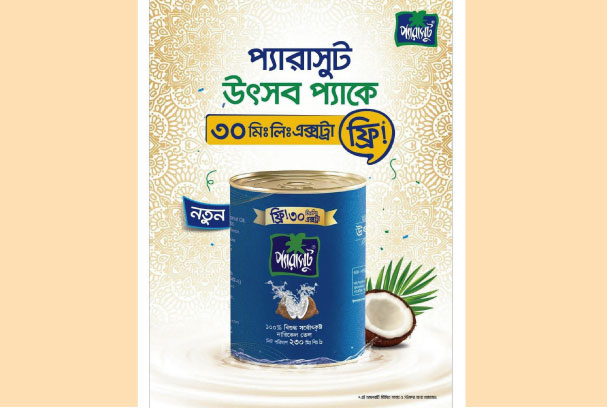 দেশের সেরা নারিকেল তেল ব্র্যান্ড প্যারাসুট-এর নির্মাতা প্রতিষ্ঠান ম্যারিকো বাংলাদেশ লিমিটেড সম্প্রতি বাজারে এনেছে নতুন উৎসব প্যাক। সবার চিরচেনা সেই প্রিয় নারিকেল তেলকেই উৎসব প্যাকের সাথে নতুনভাবে সাজানো হয়েছে।