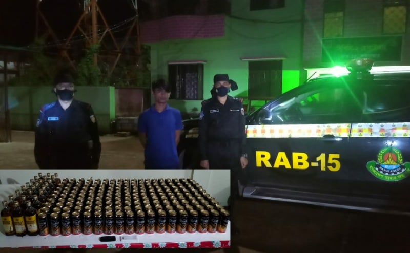কক্সবাজারের উখিয়ায় অভিযান চালিয়ে করে ২৪ বোতল বিদেশী মদ ও ১৭৫ ক্যান বিয়ারসহ এক মাদক কারবারীকে আটক করেছে র্যাব-১৫।