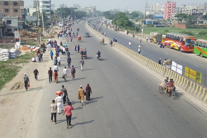 অনেকে গাড়ি না পেয়ে পায়ে হেঁটে গন্তব্যে উদ্দেশ্যে রওনা করেন। দুই একটি সিএনজি অটোরিকশা পাওয়া গেলেও ভাড়া হাঁকছে কয়েকগুণ বেশি।