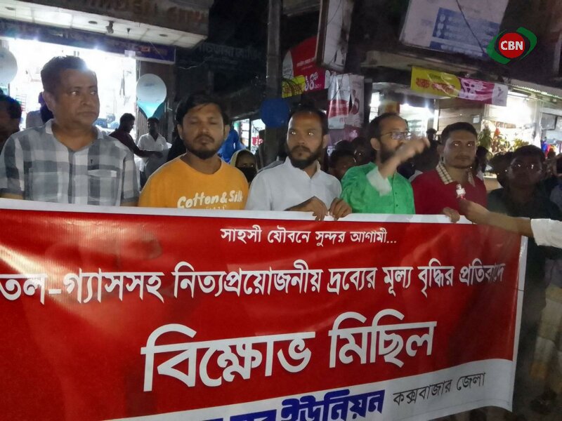 নিত্য প্রয়োজনীয় দ্রব্যমূল্যের উর্ধধগতির প্রতিবাদে বিক্ষোভ মিছিল ও পথসভা করেছে বাংলাদেশ যুব ইউনিয়ন কক্সবাজার জেলা সংসদ। ৭ জানুয়ারি সন্ধ্যায় মিছিলটি শহরের প্রধান সড়ক প্রদক্ষিণ করে পথসভায় মিলিত হয়।