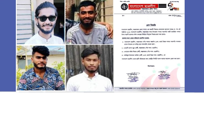 শাস্তি পাওয়া কর্মীরা হলেন, কক্সবাজার পৌর শাখার অন্তর্গত ১২ নং ওয়ার্ড (উত্তর) ছাত্রলীগের সভাপতি সাদমান ও পৌর শাখার কর্মী মেহদী হাসান মুন্না , এনায়েত করিম শিহাব , আরিফুল ইসলাম আরিফ ।