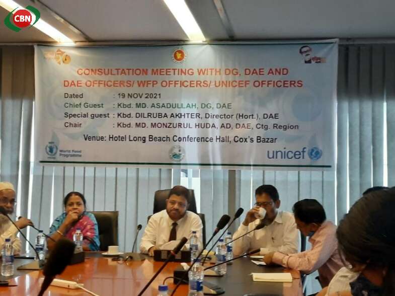 কৃষি সম্প্রসারণ অধিদপ্তরে চট্টগ্রাম অঞ্চল অতিরিক্ত পরিচালক মোঃ মন্জুরুল হুদা সভাপতিত্বে সভায় প্রধান অতিথি হিসেবে উপস্থিত ছিলেন… কৃষি সম্প্রসারণ অধিদপ্তরের (ডিএই) মহাপরিচালক কৃষিবিদ মো. আসাদুল্লাহ, বিশেষ অতিথি হিসেবে উপস্থিত ছিলেন কৃষি সম্প্রসারণ অধিদপ্তর, খামারবাড়ি, ঢাকার হর্টিকালচার উইংয়ের পরিচালক কৃষিবিদ দিলরুবা আকতার, বিশেষ অতিথি হিসেবে উপস্থিত ছিলেন কৃষি সম্প্রসারণ অধিদপ্তরে কক্সবাজার জেলার উপপরিচালক কৃষিবিদ ড. মোহাম্মদ এখলাস উদ্দিন’সহ ডিজি, ডিএই এন্ড ডিএই, ডব্লিউএফপি, ইউএনআইসিইএফ’র কর্মকর্তা’রা উপস্থিত ছিলেন।