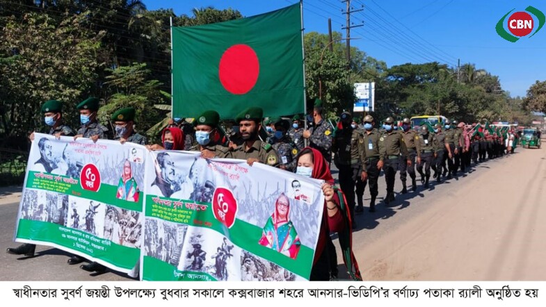 মহান স্বাধীনতার সুবর্ণ জয়ন্তী (২৬ মার্চ ২০২০-১৬ ডিসেম্বর ২০২১) যথাযোগ্য মর্যাদায় উদযাপন উপলক্ষ্যে কক্সবাজার জেলা আনসার ও ভিডিপি কার্যালয় এবং কক্সবাজার ৩৯ আনসার ব্যাটালিয়ন এর উদ্যোগে বর্ণাঢ্য পতাকা র্যালী অনুষ্ঠিত হয়েছে।