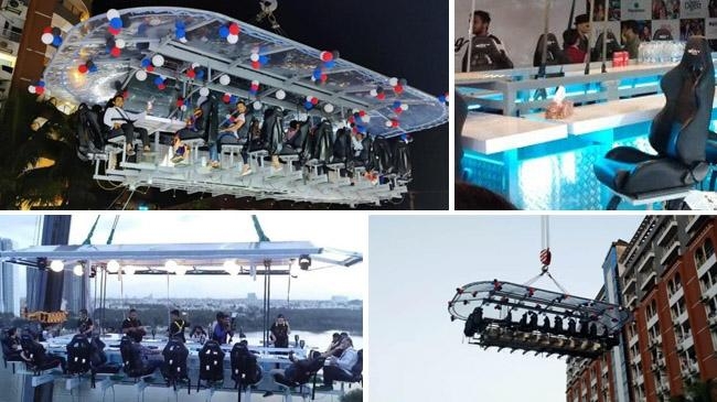 রেস্তোরাঁর পশ্চিম পাশে খালি স্থানে বসানো হয়েছে একটি ক্রেন। একটি বিশেষ পাটাতনে ২০ জন ধারণক্ষমতার চেয়ার, টেবিল ও ওপরে ছাতার মতো এক ধরনের ছাদ তৈরি করে চারপাশ খোলা রাখা হয়েছে। অ্যালুমিনিয়াম ও স্টিলের সমন্বয়ে তৈরি বিশেষ তার ক্রেনের মাথায় লাগিয়ে সংযুক্ত করা হয়েছে পাটাতন। রান্নাঘরে পছন্দমতো খাবার অর্ডার করলে ‘ঝুলন্ত পাটাতনে’ সেই খাবার পরিবেশন করবেন রেস্টুরেন্টের কর্মীরা।