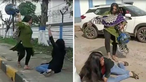 ওই ঘটনার একটি ভিডিও ভাইরাল হয়েছে। তাতে দেখা যাচ্ছে, স্বামীর প্রেমিকাকে পুলিশ নিয়ে যাওয়ার সময় পেছন থেকে তাকে হেলমেট দিয়ে মাথায় ও পায়ে আঘাত করেন ওই নারী। এরপর ওই তরুণীকে রাস্তায় ফেলে পেটাতে থাকেন।