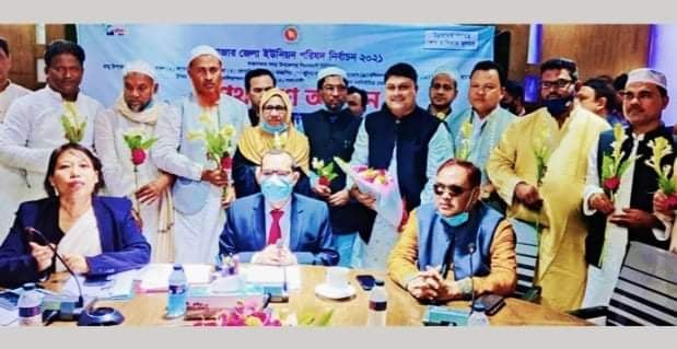 শপথ গ্রহণ শেষে নবনির্বাচিত চেয়ারম্যানদের ফুলেল শুভেচ্ছা জানান জেলা প্রশাসক।