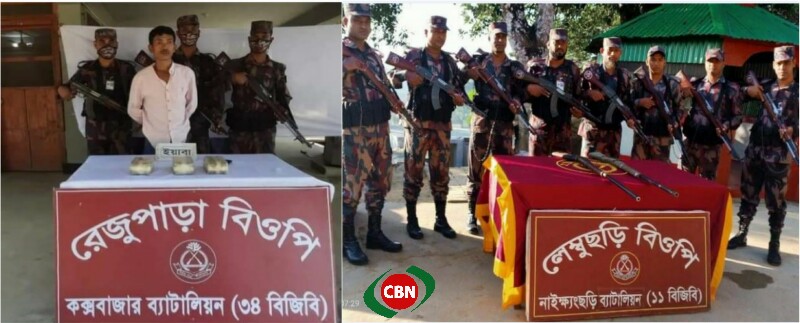 নাইক্ষ্যংছড়ির রেজু ও লেম্বুছড়িতে বিজিবি’র অভিযানে ইয়াবা-অস্ত্র উদ্ধার, আটক-১