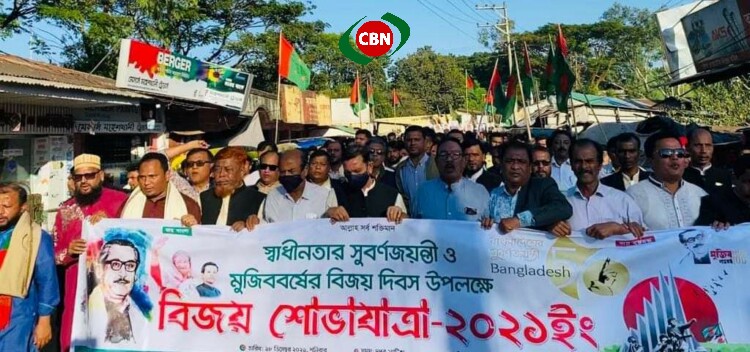 আলোচনা সভার আগে উপজেলা আওয়ামী লীগ কার্যালয় থেকে আশেক উল্লাহ রফিক এমপি’র নেতৃত্বে বিশাল বিজয় শোভাযাত্র পৌরসভার প্রধান প্রধান সড়ক প্রদক্ষিণ করে দলীয় কার্যালয়ে শেষ হয়।