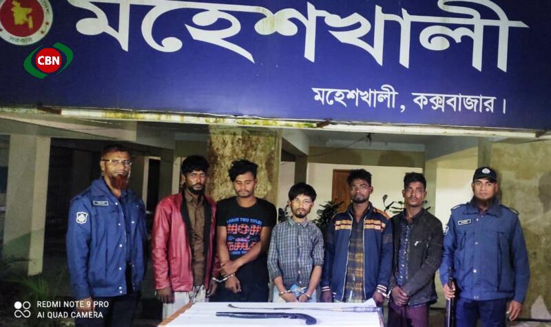 আটককৃতরা হলেন , সোনাদিয়া পশ্চিম পাড়ার মাহমুদুল হকের পুত্র মোঃ রাসেল (৩২), মাতারবাড়ি ইউনিয়নের নুরুল হোসনের পুত্র ওয়াজ উদ্দীন (২৭), আবুল হোসনের পুত্র মোঃ সাগর (২৫),আবুল হোসনের পুত্র আবদুল মালেক (৩৫), নাজিরের টেক এলাকার মিয়া হোসনের পুত্র রোহিঙ্গা শহিদ (২৩)। এসময় তাদের কাজ থেকে ১ টি এক নলা বন্দুক ও একটি লম্বা রাম দা উদ্ধার করে পুলিশ।