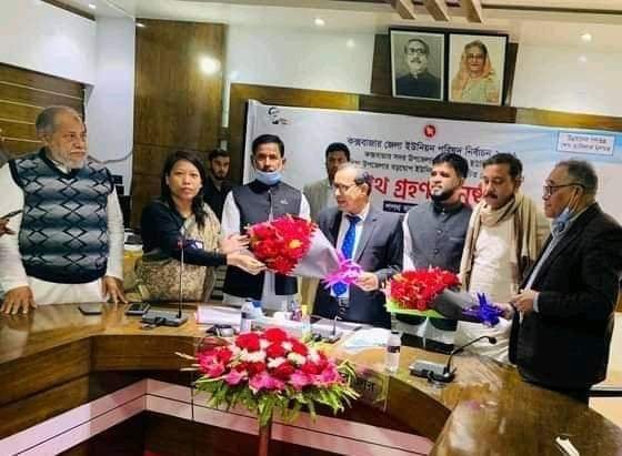 শপথ অনুষ্ঠানে,কক্সবাজার জেলা আওয়ামী লীগের সভাপতি এড.ফরিদুল ইসলাম চৌধুরী, সাধারণ সম্পাদক মেয়র মুজিবুর রহমান,