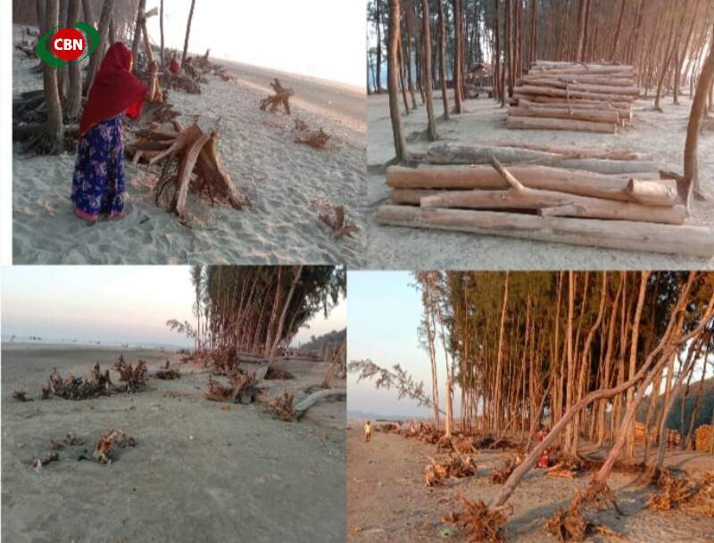 সৈকতে সরেজমিনে ঘুরে দেখা যায়, যে ঝাউ গাছগুলোকে কেন্দ্র করে এই সৈকত গড়ে উঠেছে। সেই সৌন্দর্য বৃদ্ধিকারী এসব ঝাউগাছ আজ বিলীনের পথে দাঁড়িয়েছে। আবার বনবিভাগের কোন নজরদারী না থাকায় অনেক ক্ষেত্রে ঝাউগাছের গোঁড়ালি থেকে বালি সরিয়ে ফেলে সেগুলো কেটে নিয়ে যাচ্ছে স্থানীয় লােকজনেরা। কিন্তু কোন কার্যকর ব্যবস্থা নেয়নি সংশ্লিষ্ট কর্তৃপক্ষ।