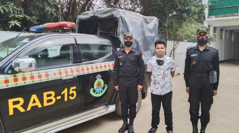 কক্সবাজারে সাইবার অপরাধে অভিযুক্ত মোঃ মনসুর আলম মুন্না নামের এক পলাতক আাসামীকে গ্রেফতার করেছে র্্যাব ১৫।