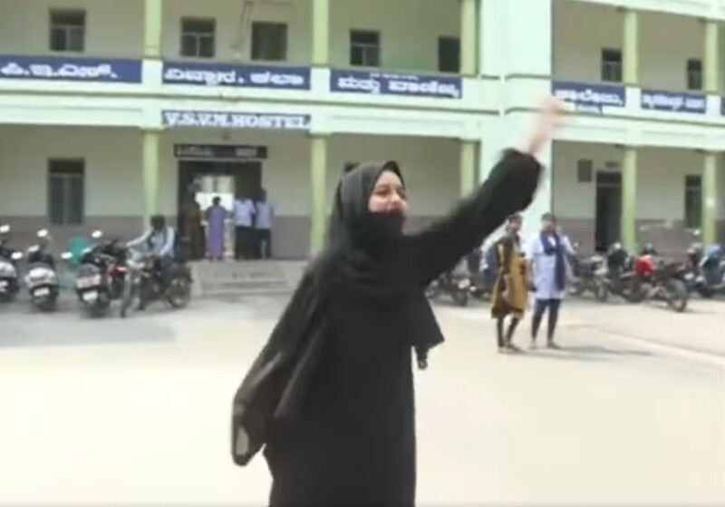 মঙ্গলবার সামাজিক মাধ্যমে ভাইরাল হওয়া ওই ভিডিওতে দেখা যায়, কর্নাটকের একটি শিক্ষাপ্রতিষ্ঠানে প্রবেশের সময় গেরুয়া বাহিনীর কাছে উপহাসের শিকার হন ওই মুসলিম ছাত্রী। উগ্র হিন্দুত্ববাদী নানা স্লোগানে তাকে ভয় দেখানোর চেষ্টা করেন তারা, কিন্তু ছাত্রী ভড়কে না গিয়ে উল্টো সাহসী এক প্রতিবাদ করেছেন। `আল্লাহু আকবার’ বলতে বলতে শ্রেণিকক্ষে প্রবেশ করেন ওই ছাত্রী।