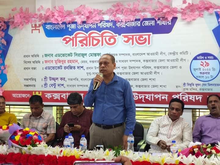 এতে বিশেষ অতিথির বক্তব্যে কক্সবাজার পৌর আওয়ামী লীগের সভাপতি নজিবুল ইসলাম বলেন, সাম্প্রদায়িক অপশক্তি রুখে দিতে পূজা উদযাপন পরিষদকে সামাজিক সচেতনতা বাড়াতে হবে। জেলা পূজা উদযাপন পরিষদের সাধারন সম্পাদক বেন্টু দাশের সঞ্চালনায় অনুষ্ঠিত উক্ত পরিচিতি সভায় বক্তব্যে রাখেন-সহ সভাপতি রতন দাশ, অধ্যাপক অজিত দাশ, উদয় শংকর পাল মিঠু, স্বপন পাল নাজির, সুদাম কান্তি দাশ, স্বরুপম পাল পাঞ্জু, দীপক শর্মা দিপু, সিনিয়র কর্মকর্তা অধ্যাপক প্রিয়তোষ শর্মা চন্দন, কোষাধ্যক্ষ স্বপন গুহ, সহ-সাংগঠনিক সম্পাদক বিপ্লব মল্লিক শুভ, মহিলা সম্পাদক দিপ্তি শর্মা, কক্সবাজার সদর উপজেলা সভাপতি এডভোকেট বাপপী শর্মা, কক্সবাজার পৌর সাধারণ সম্পাদক জনি ধর, রামু উপজেলা সভাপতি তপন মল্লিক, ঈদগাঁও উপজেলা সভাপতি মৃণাল আচার্য্য, চকরিয়া উপজেলা সভাপতি তপন দাশ, পৌর সভাপতি টিটু বসাক, পেকুয়া উপজেলা সভাপতি সুমন বিশ্বাস, কুতুবদিয়া উপজেলা সভাপতি অধ্যাপক সমির কান্তি দাশ, মহেশখালী উপজেলা সভাপতি ব্রজ গোপাল ঘোষ, টেকনাফ উপজেলা সভাপতি শিবপদ ভট্টাচার্য, কক্সবাজার পৌর সহ সভাপতি সুজন শর্মা জন। এছাড়া উপস্থিত ছিলেন- কক্সবাজার পৌর সভাপতি তপন দাশ, কক্সবাজার সদর উপজেলার সাধারণ সম্পাদক সাংবাদিক বলরাম দাশ অনুপম, রামু উপজেলা সাধারন সম্পাদক সদ্বিপ শর্মা, ঈদগাঁও উপজেলা সাধারন সম্পাদক জিকু দাশ সুব্রত, চকরিয়া উপজেলা সাধারন সম্পাদক বাবলা দেবনাথ, পেকয়া উপজেলা সাধারন সম্পাদক সুকুমার দেবনাথ, মহেশখালী উপজেলা সাধারন সম্পাদক কাউন্সিলর প্রনব কুমার দে, জেলা পূজা উদযাপন পরিষদের যুগ্ম সাধারণ সম্পাদক কাঞ্চন দাশ, স্বপন দাশ, মিটন পাল, সাংগঠনিক সম্পাদক মিটন দাশ মিন্টু, সহ কোষাধ্যক্ষ সুবীর চৌধুরী, দপ্তর সম্পাদক প্রিতম ধর, সহ দপ্তর সম্পাদক শুভ দাশ, প্রচার সম্পাদক অজিত কুমার দাশ হিমু, সহ প্রচার সম্পাদক শিপন পাল, সাংস্কৃতিক সম্পাদক প্রদীপ পাল, সহ- সাংষ্কৃতিক সম্পাদক দেবাশীষ পাল দেবু, সমাজ কল্যাণ সম্পাদক সাগর পাল সাজু, সহ মহিলা সম্পাদক সুমা দাশ, পূজা বিষয়ক সম্পাদক মিঠুন কান্তি দে, সহ পূজা বিষয়ক সম্পাদক প্রসেনজিত সেন বাপ্পা, কার্যনির্বাহী সদস্য বিশ্বজিত পাল বিশু, শাওন চক্রবর্তী জনি। অনুষ্ঠানের শুরুতেই পবিত্র গীতা পাঠ করেন সদর উপজেলা পূজা উদযাপন পরিষদের যুগ্ম সাধারণ সম্পাদক ও জেলা সৎসঙ্গ মন্দিরের পুরোহিত প্রিয়তোষ কান্তি দে।