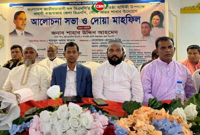 বাংলাদেশ জাতীয়তাবাদী দল বিএনপির ৪৪তম প্রতিষ্ঠা বার্ষিকী উপলক্ষে প্রবাসী কক্সবাজার জেলা বিএনপি সৌদি আরব শাখার উদ্যোগে “আলোচনা সভা ও দোয়া মাহফিল” প্রধান অতিথি হিসেবে উপস্থিত ছিলেন মক্কা প্রদেশিক শাখার সদস্য সচিব ও প্রবাসী কক্সবাজার জেলা বিএনপি সৌদি শাখার উপদেষ্টা শাহাব উদ্দিন আহমেদ। সভাপতিত্ব করেন শামসুল আলম সভাপতি প্রবাসী কক্সবাজার জেলা বিএনপি সৌদি শাখা।