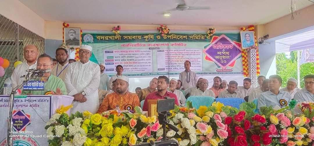 কক্সবাজারের চকরিয়া উপজেলার উপকূলীয় জনপদে অবস্থিত দক্ষিণ এশিয়ার বৃহত্তম সমবায় প্রতিষ্ঠান বদরখালী সমবায় কৃষি ও উপনিবেশ সমিতির তিবার্ষিক নির্বাচনে বিজয়ী নবনির্বাচিত কমিটির অভিষেক ও শপথ গ্রহণ অনুষ্ঠান বৃহস্পতিবার ৬ অক্টোবর অনুষ্ঠিত হয়েছে।