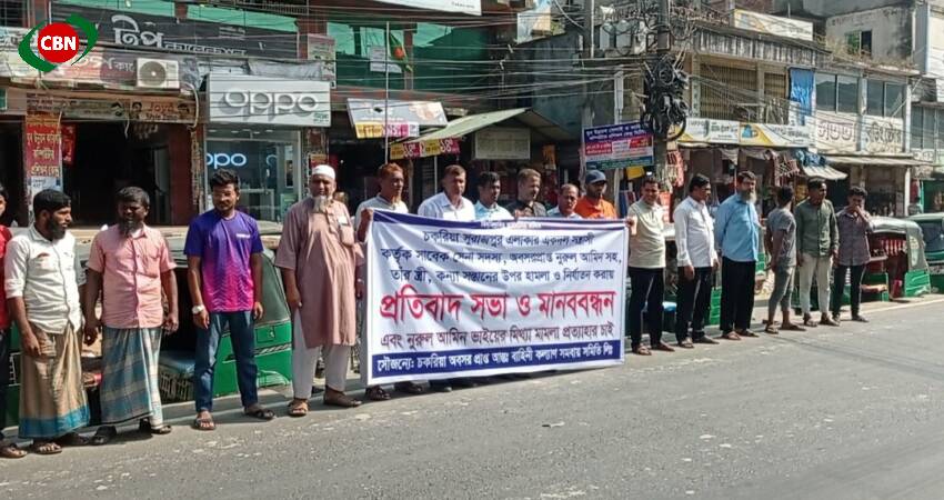 কক্সবাজারের চকরিয়ার সুরাজপুর-মানিকপুর ইউনিয়নের বাসিন্দা অবসরপ্রাপ্ত সেনা সদস্য নুরুল আমিনসহ পরিবারের সদস্যদের ওপর সন্ত্রাসী হামলা এবং উল্টো থানায় মামলা রুজুর প্রতিবাদে সভা ও মানববন্ধন কর্মসূচী পালন করা হয়েছে।