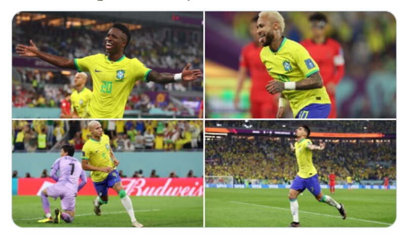 কোয়ার্টার ফাইনালে যাওয়ার লড়াইয়ে ম্যাচের ৩৫ মিনিটে ৪-০ গোলের লিড নিয়েছে ব্রাজিল। ম্যাচের ৬ মিনিটে গোল করেন ভিনিসিয়াস জুনিয়র। তাকে গোল করান রাফিনহা।