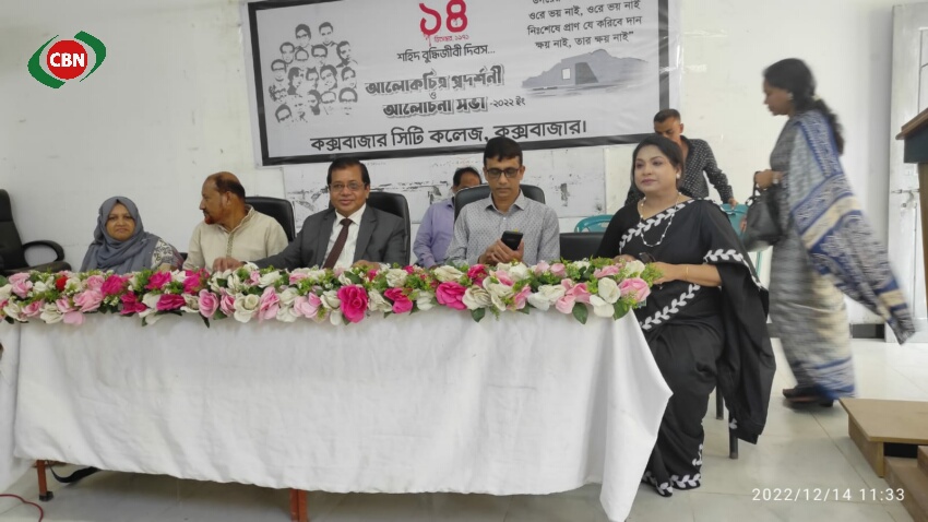 শহিদ বুদ্ধিজীবী দিবস উদযাপনের ধারাবাহিকতায় সমবেত জাতীয় সঙ্গীত ও পবিত্র ধর্ম গ্রন্থ থেকে পাঠের মধ্য দিয়ে অনুষ্ঠান সূচনা হয়। অধ্যক্ষ ক্য থিং অং এর সভাপতিত্বে অনুষ্ঠিত অনুষ্ঠানে স্বাগত বক্তব্য রাখেন শহিদ বুদ্ধিজীবী দিবস ও মহান বিজয় দিবস-২০২২ উদযাপন কমিটির আহবায়ক ও বিভাগীয় প্রধান বাংলা বিভাগ অধ্যাপক শরমিন ছিদ্দিকা লিমা। আলোচনা সভায় শহিদ বুদ্ধিজীবী দিবসের তাৎপর্য ভিন্ন ভিন্ন দৃষ্টিকোন থেকে তুলে ধরেন কক্সবাজার সিটি কলেজের শিক্ষকবৃন্দ। বক্তব্যে কক্সবাজার সিটি কলেজের উপাধ্যক্ষ আবু মোহাম্মদ জাফর সাদেক মহান মুক্তিযুদ্ধে প্রগতিশীল ও প্রতিক্রিয়াশীল পক্ষ সম্পর্কে আলোচনা করেন। আলোচনায় সভায় আরো বক্তব্য প্রদান করেন হিসাব বিজ্ঞান বিভাগের বিভাগীয় প্রধান অধ্যাপক গোপাল কৃষ্ণ দাশ, রাষ্ট্রবিজ্ঞান বিভাগের বিভাগীয় প্রধান অধ্যাপক শাহানুর আক্তার, পদার্থবিজ্ঞান বিভাগের বিভাগীয় প্রধান অধ্যাপক জেবুন্নেছা, ইসলামের ইতিহাস ও সংস্কৃতি বিভাগের বিভাগীয় প্রধান অধ্যাপক এস এম আকতার উদ্দিন চৌধুরী, অর্থনীতি বিভাগের বিভাগীয় প্রধান অধ্যাপক তসলিমা রশীদ, থিয়েটার স্টাডিজ বিভাগের অধ্যাপক স্বপন ভট্টাচার্য্য, বাংলা বিভাগের অধ্যাপক মং ছেন হেন, এবং থিয়েটার স্টাডিজ বিভাগের অধ্যাপক কে.এম. সানাউল হক।