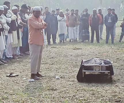 হাতকড়া আর ডান্ডাবেড়ি নিয়ে মায়ের জানাজা পড়ালেন গাজীপুরের কালিয়াকৈর উপজেলার বোয়ালী ইউনিয়ন বিএনপির সভাপতি আলী আজম। মায়ের মৃত্যুতে মঙ্গলবার (২০ ডিসেম্বর) সকালে গাজীপুর জেলা কারাগার থেকে তিনি প্যারোলে মুক্তি পান। পরে কালিয়াকৈরের পাবরিয়াচালায় বাড়িতে মায়ের জানাজা পড়ান।