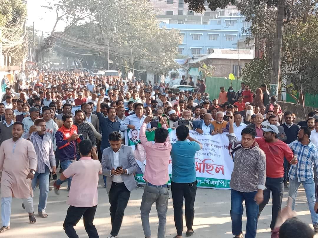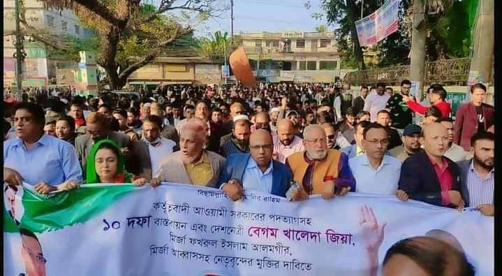 ফ্যাসিস ও দুর্র্নীতিপরায়ণ সরকারের পদত্যাগ, অবৈধ সংসদ বাতিল, মির্জা ফখরুল ইসলাম আলমগীর ও মির্জা আব্বাসসহ কারান্তরীণ নেতাকর্মীদের মুক্তি দাবি এবং গ্যাসসহ দ্রব্যমূল্যের দাম কমানোসহ ১০ দফা দাবিতে কক্সবাজারে বিশাল গণমিছিল করেছে কক্সবাজার জেলা বিএনপি।