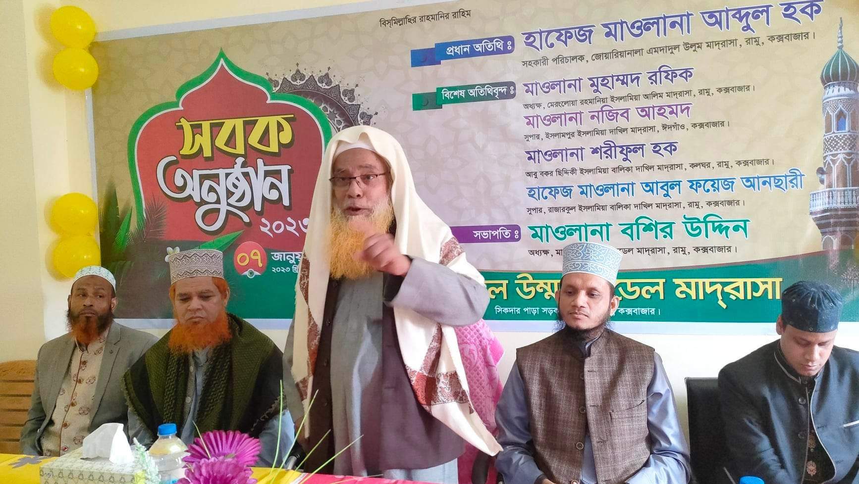 শনিবার (৭ জানুয়ারি) দুপুরে রামু সরকারি কলেজ সংলগ্ন হক ম্যানশনে প্রতিষ্ঠানটির ক্যাম্পাসে অনুষ্ঠানে প্রধান অতিথি ছিলেন জোয়ারিয়ানালা এমদাদুল উলুম মাদরাসার সহকারী পরিচালক, প্রবীণ আলেমেদ্বীন হাফেজ মাওলানা আব্দুল হক।