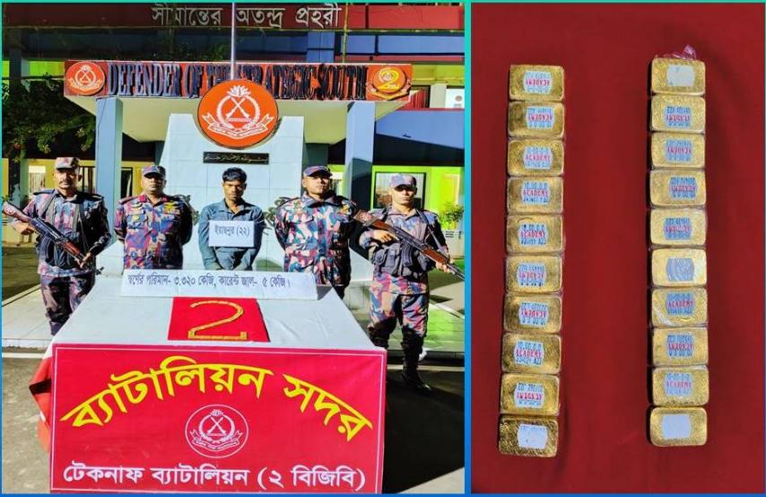 তিনি জানান,গোপন সংবাদে জানা যায় যে, বুধবার রাতে মিয়ানমার থেকে টেকনাফ ২বিজিবি ব্যাটালিয়নের অধীনস্থ শাহপরীরদ্বীপ বিওপি’র বিআরএম-৩ হতে ৭০০ গজ উত্তর দিকে ওবিএম পোস্ট এলাকা দিয়ে স্বর্ণের একটি বড় চালান বাংলাদেশে পাচার হতে পারে। উক্ত সংবাদের ভিত্তিতে ব্যাটালিয়ন সদর হতে বিজিবি জওয়ানদের একটি বিশেষ টহলদল এবং শাহপরীরদ্বীপ বিওপি হতে একটি চোরাচালান দমন টহলদল ওই এলাকায় অভিযানে যায়। টহলদল কয়েকটি উপদলে বিভক্ত হয়ে সেখানে কৌশলগত অবস্থান গ্রহণ করে। রাত আটটার দিকে টহলদল উক্ত স্থানে একজন ব্যক্তিকে নাফ নদীতে মৎস্য আহরণ শেষে জাল হাতে নিয়ে কেওড়া বাগানের ভিতর দিয়ে বেড়ীবাঁধের দিকে আসতে দেখলে তাকে চ্যালেঞ্জ করে। ফলে উক্ত ব্যক্তি বিজিবি টহলদলের উপস্থিতি টের পাওয়া মাত্র তার হাতে থাকা জাল ফেলে দিয়ে দৌড়ে পালোনোর চেষ্টা করলে টহলদল তাকে ধাওয়া করে আটক করতে সক্ষম হয়। উক্ত ব্যক্তিকে তল্লাশী করে তার কোমরে অভিনব পদ্ধতিতে ফিটিং অবস্থায় নেটের জাল ও টেপ দিয়ে মোড়ানো ২টি স্বর্ণের বারের বেল্ট এবং ৫ কেজি কারেন্ট জাল জব্দ করা হয়। পরবর্তীতে উক্ত বেল্টগুলো খুলে ২০টি স্বর্ণের বার উদ্ধার করে। উদ্ধারকৃত স্বর্ণের বারের ওজন ৩ কেজি ৩২০ গ্রাম। যার মূল্য ২ কোটি ৫৮ লাখ ,৩৯ হাজার টাকা। ধৃত ব্যক্তির স্বীকারোক্তিতে উক্ত স্বর্ণ পাচারের সাথে জড়িত আরো দুই জন চোরাকারবারীকে পলাতক আসামী করা হয়েছে।