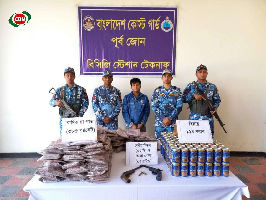 তিনি আরো জানান, জব্দকৃত দেশীয় পিস্তল, গোলা, বিয়ার এবং চা পাতাসহ আটককৃত ব্যাক্তিকে পরবর্তী আইনানুগ ব্যবস্থা গ্রহণের জন্য টেকনাফ মডেল হস্তান্তর করা হয়েছে।