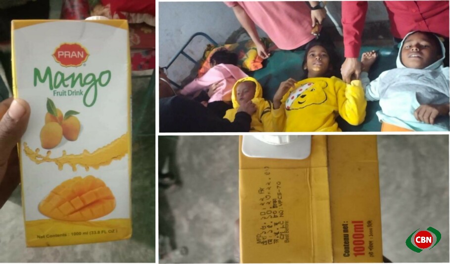 অসুস্থদের পিতা আব্দু রহিম জানান, বাড়িতে প্রাণ ম্যাংগু জুস নিয়ে বেড়াতে আসেন জনৈক ব্যক্তি।