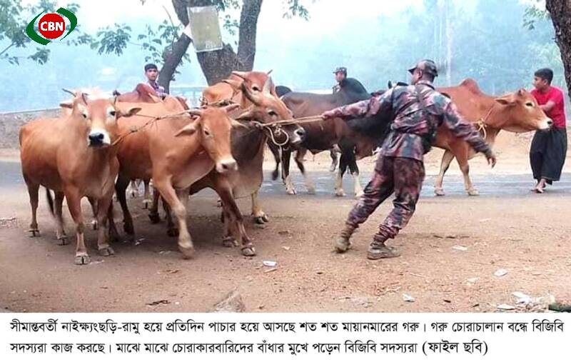 চোরাই পথে আসা মায়ানমারের গরুতে সয়লাব হয়ে গেছে বান্দরবানের নাইক্ষ্যংছড়ি ও কক্সবাজারের রামু উপজেলার প্রত্যন্ত জনপদ। গরু নিয়ে সন্ত্রাসী কর্মকান্ড, বিজিবির সাথে চোরাকারবারিদের সংঘর্ষে প্রাণহানি সহ নানা অপ্রীতিকর ঘটনার কারণে এ দুটি উপজেলায় বিরাজ করতে চরম উদ্বেগ-উৎকন্ঠা।