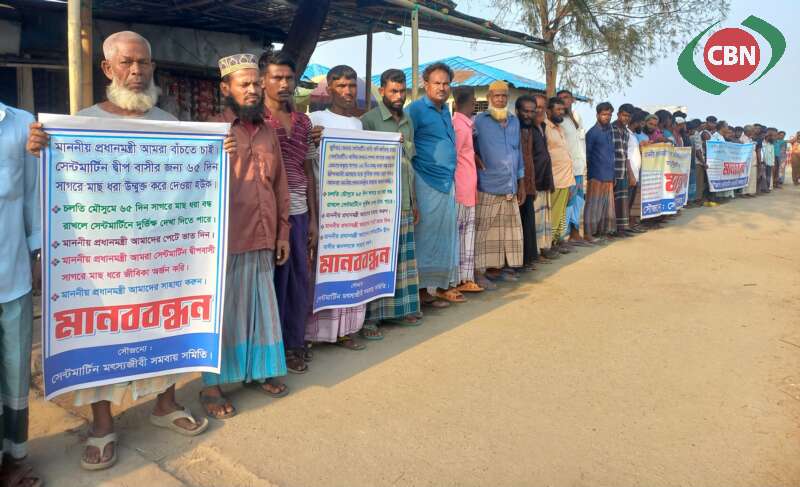 কক্সবাজারের সেন্টমার্টিনদ্বীপে জেলেদের ৬৫দিন সাগরে মাছ শিকার বন্ধের সরকারি সিদ্ধান্ত পুনর্বিবেচনা ও প্রত্যাহারের দাবিতে এক বিশাল মানববন্ধন হয়েছে।
