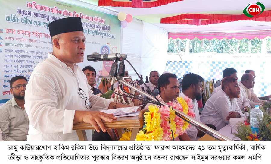 রামু উপজেলার কাউয়ারখোপ হাকিম রকিমা উচ্চ বিদ্যালয়ের প্রতিষ্ঠাতা, বিশিষ্ট দানবীর মরহুম ফারুখ আহমদের ২১ তম মৃত্যুবার্ষিকী উপলক্ষ্যে স্মরণ সভা, বার্ষিক ক্রীড়া ও সাংস্কৃতিক প্রতিযোগিতার পুরস্কার বিতরণ অনুষ্ঠানে প্রধান অতিথির বক্তৃতায় এমপি সাইমুম সরওয়ার কমল এসব কথা বলেন।