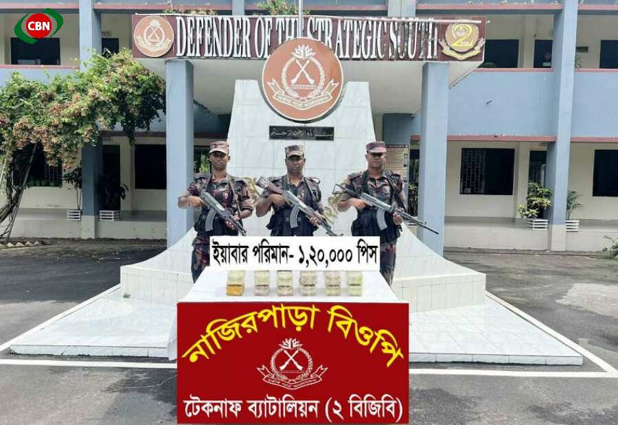 কক্সবাজারের টেকনাফের নাফনদী সীমান্তে অভিযান চালিয়ে ১ লক্ষ ২০ হাজার পিস ইয়াবা ট্যাবলেট উদ্ধার বর্ডার গার্ড বাংলাদেশ (বিজিবি)।