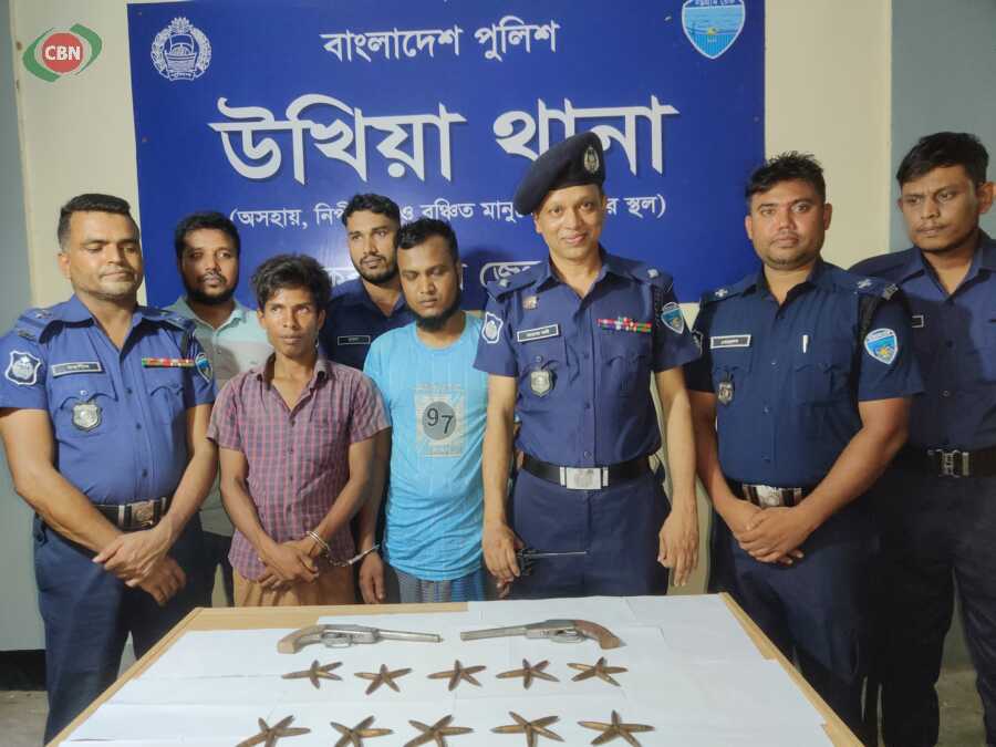 কক্সবাজারের উখিয়ায় অস্ত্র ও গুলিসহ দুই রোহিঙ্গা যুবককে গ্রেফতার করেছে উখিয়া থানা পুলিশ। গ্রেফতারকৃতরা হলো ক্যাম্প-৩ এর সি-৩৬ ব্লকের রশিদ উল্লাহর ছেলে আবু বক্কর সিদ্দিক(৩০) ও ক্যাম্প-৪ এর সি-২ ব্লকের আমির হোসেনের ছেলে সাদ্দাম হোসেন(২০)