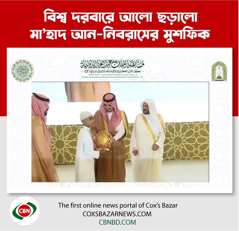 সুমধুর তেলাওয়াত ও মনোমুগ্ধকর সুরে কিং আবদুল আজিজ আন্তর্জাতিক কোরাআন প্রতিযোগিতা-২০২৩ এ বাংলাদেশের মান সমুন্নত রেখেছে পর্যটন নগরী কক্সবাজারের ক্ষুদে কারি মুশফিক। সে ইসলামিক ও জাগতিক শিক্ষার সমন্বয়ে গড়ে তোলা যুগোপযোগী প্রতিষ্ঠান মা’হাদ আন-নিবরাস মাদ্রাসার হিফজুল কোরআন বিভাগের হাতে গড়া শিক্ষার্থী।