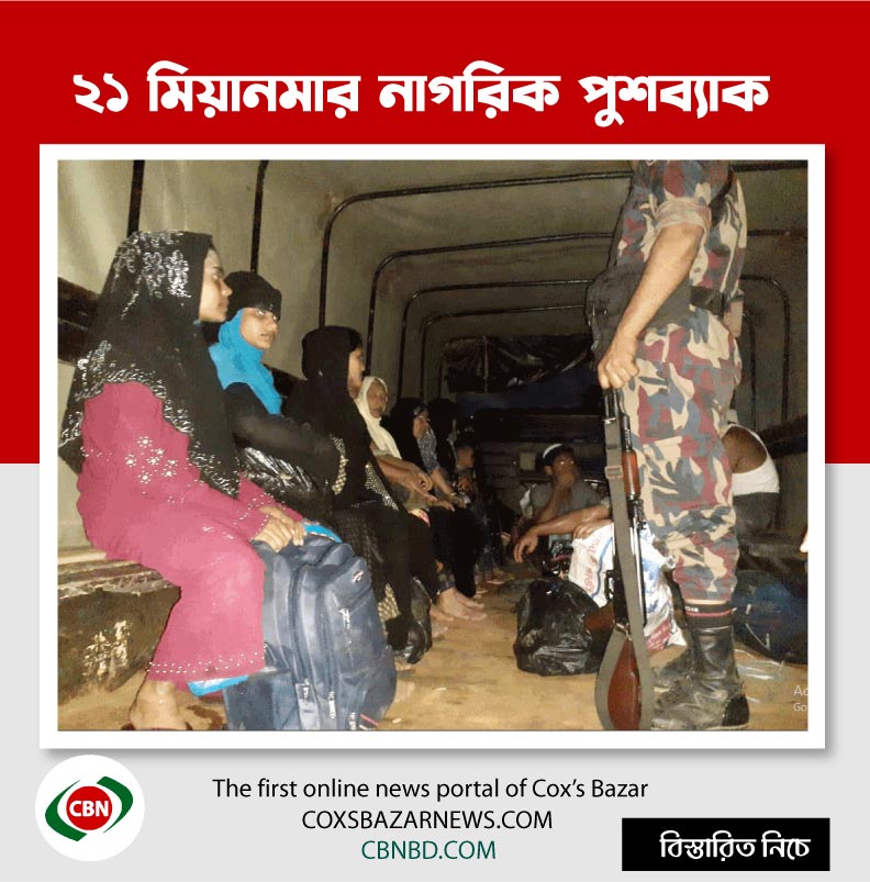 আটকের মধ্যে ৭ জন পুরুষ, ৯ জন নারী ও ৫ জন শিশু রয়েছেন।পরবর্তীতে বিজিবির সদস্যরা তাদেরকে টেকনাফের হোয়াইক্যং বিওপির দায়িত্বপূর্ণ এলাকার নাফনদী দিয়ে তাদেরকে মিয়ানমারের পুশব্যাক করা হয় বলে জানা যায়। আরো জানা যায়, সু-চিকিৎসার জন্য তারা বাংলাদেশে অনুপ্রবেশ করছিল।