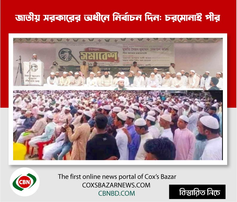 দ্রুত রোহিঙ্গা সমস্যার সমাধান সহ অশ্লীলতা বেহায়াপনামুক্ত ও পরিবেশবান্ধব পর্যটন নগরী গড়ে তোলা, নিরাপদ, পরিচ্ছন্ন ও জলাবদ্ধতামুক্ত কক্সবাজার শহর বিনির্মাণ, কক্সবাজারকে মাদক, সন্ত্রাসী, চুরাকারবারী ও ইয়াবা মুক্তকরণের দাবীতে আজ ১৬ সেপ্টেম্বর শনিবার দুপুর ২ টায় কক্সবাজার পাবলিক হল ময়দানে ইসলামী আন্দোলন বাংলাদেশ কক্সবাজার জেলা কর্তৃক আয়োজিত বিশাল সমাবেশে প্রধান অতিথির বক্তব্যে পীর সাহেব চরমোনাই উপরোক্ত বক্তব্য প্রদান করেন।