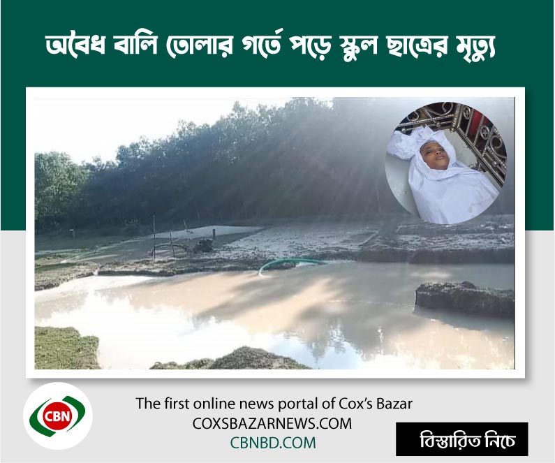 শুক্রবার সকালে শুক্রবার (২২ সেপ্টেম্বর) কক্সবাজার জেলা ঈদগাঁও উপজেলার, ইসলামপুর ইউনিয়নের পূর্ব ভিলেজার পাড়া,পুলচুয়ার মুখে অবৈধভাবে বালি উত্তোলনের গভীর গর্তে পড়ে মৃত্যু হয়েছে ঐ শিশুর।