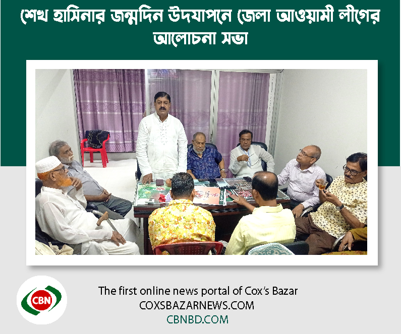 আওয়ামী লীগ সভাপতি ও প্রধানমন্ত্রী শেখ হাসিনার ৭৭তম জন্মদিন যথাযোগ্য মর্যাদায় উদযাপন করবে কক্সবাজার জেলা আওয়ামী লীগ।