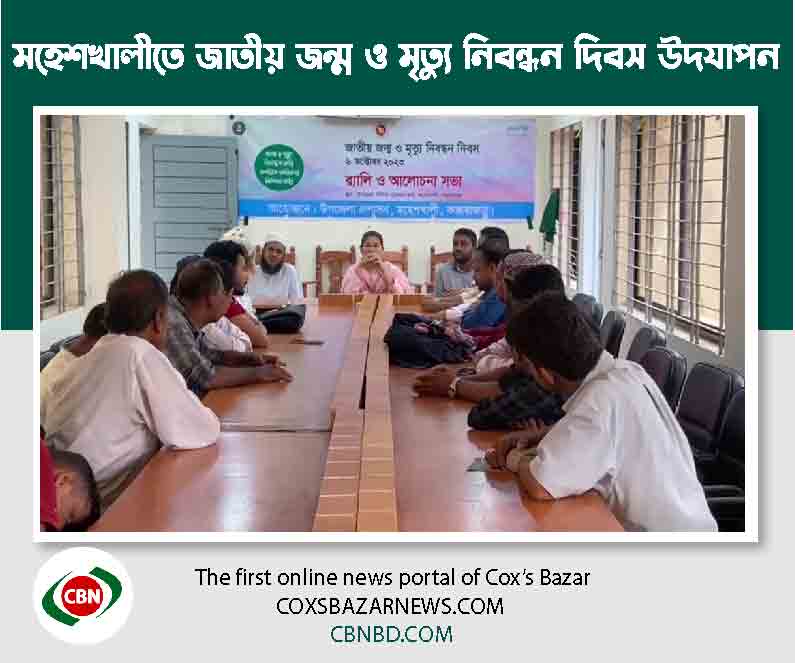 মহেশখালীতে জন্ম ও মৃত্যু নিবন্ধন করি, নাগরিক অধিকার নিশ্চিত করি’ এই স্লোগানকে সামনে রেখে জাতীয় জন্ম ও মৃত্যু নিবন্ধন দিবস উদযাপন উপলক্ষ্যে উপজেলা প্রশাসনের আয়োজনে র্যালি ও আলোচনা সভা অনুষ্ঠিত হয়েছে।