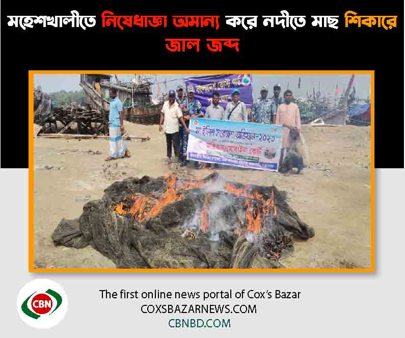 মহেশখালীতে প্রজনন মৌসুমে মা ইলিশ রক্ষার্থে ২২ দিন ইলিশ ধরায় নিষেধাজ্ঞা অমান্য করে মুদিরছড়া নদীতে মাছ শিকারের সময় অভিযান চালিয়ে বিহিন্দী, চরঘেরা জাল জব্দ করেছে মহেশখালী মৎস্য অধিদপ্তর।