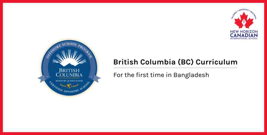 বাংলাদেশের শিক্ষাব্যবস্থায় একটি নতুন যুগের সূচনা করতে দেশে প্রথমবারের মতো ব্রিটিশ কলাম্বিয়া (বিসি) কারিকুলাম চালু করেছে নিউ হরাইজন কানাডিয়ান ইন্টারন্যাশনাল স্কুল। ভবিষ্যতের বিশ্ব অপার বৈচিত্র্যপূর্ণ ও সম্ভাবনাময়, যেখানে শিক্ষার সুবর্ণ সুযোগ রয়েছে এবং যার মাধ্যমে শিশুরা নতুন বিষয় জানার অনুপ্রেরণা পাবে। আর নিউ হরাইজন কানাডিয়ান ইন্টারন্যাশনাল স্কুলের বিসি কারিকুলাম ঠিক এই সুযোগটি নিয়েই হাজির হয়েছে।