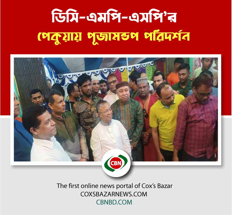 কক্সবাজারের পেকুয়ায় শারদীয় দূর্গোৎসবের মন্ডপগুলো পরিদর্শন করেছে জেলা প্রশাসক শাহিন ইমরান, চকরিয়া-পেকুয়ার সাংসদ জাফর আলম ও পুলিশ সুপার মাহফুজুর ইসলাম।