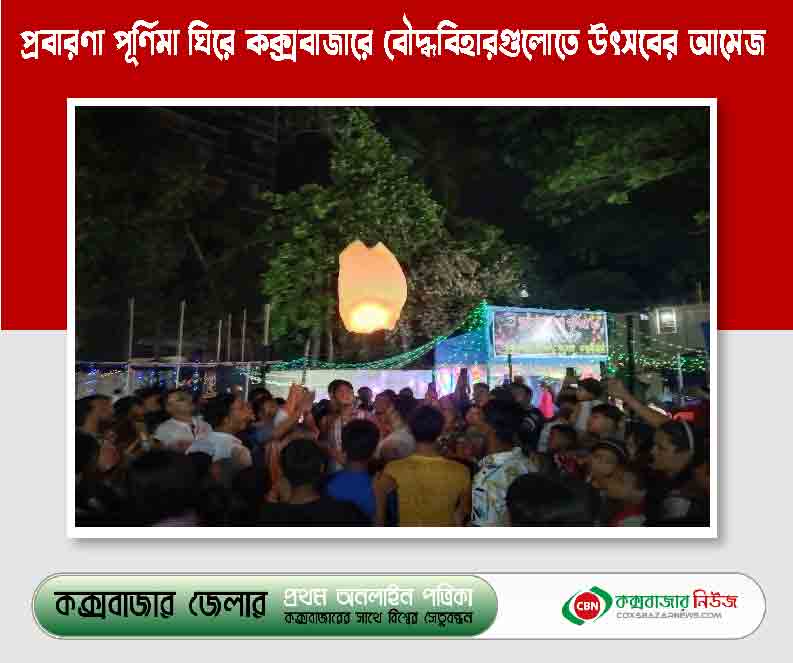 ব্যাপক উৎসাহ—উদ্দীপনার মধ্য দিয়ে কক্সবাজারে শুরু হয়েছে বৌদ্ধ ধর্মালম্বীদের অন্যতম ধর্মীয় উৎসব প্রবারণা পূর্ণিমা। এই উৎসব ঘিরে বৌদ্ধ বিহারগুলোতে উৎসবের আমেজ বিরাজ করছে। শনিবার (২৮ অক্টোবর) বুদ্ধপূজা, শিবলী পূজা, পঞ্চশীল ও অষ্টশীল গ্রহণ, কর্মদেশনা, ধ্যান অনুশীলন, প্রার্থনা, হাজারো প্রদীপ প্রজ্বলন ও ফানুস উড়ানো হয়। রবিবার প্রবারণা পূর্ণিমার দ্বিতীয় দিন। এ দিন আকাশে উড়ানো হবে শত শত ফানুস। আগামী ৩০ অক্টোবর সোমবার কক্সবাজার সমুদ্র সৈকত ও রামু বাঁকখালী নদীতে কল্প জাহাজ ভাসার মধ্য দিয়ে এই উৎসব শেষ হবে।