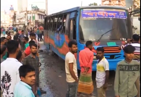 স্থানী লোকজন জানায়, সকাল সাড়ে ৫টার দিকে তিনজন লোক এসে পেট্রোল বা দাহ্য পদার্থ ঢেলে বাসটিতে আগুন ধরিয়ে দেয়। স্থানীয়রা একজনকে আটক করে। বর্তমান সে মোহাম্মদপুর থানায় রয়েছে।